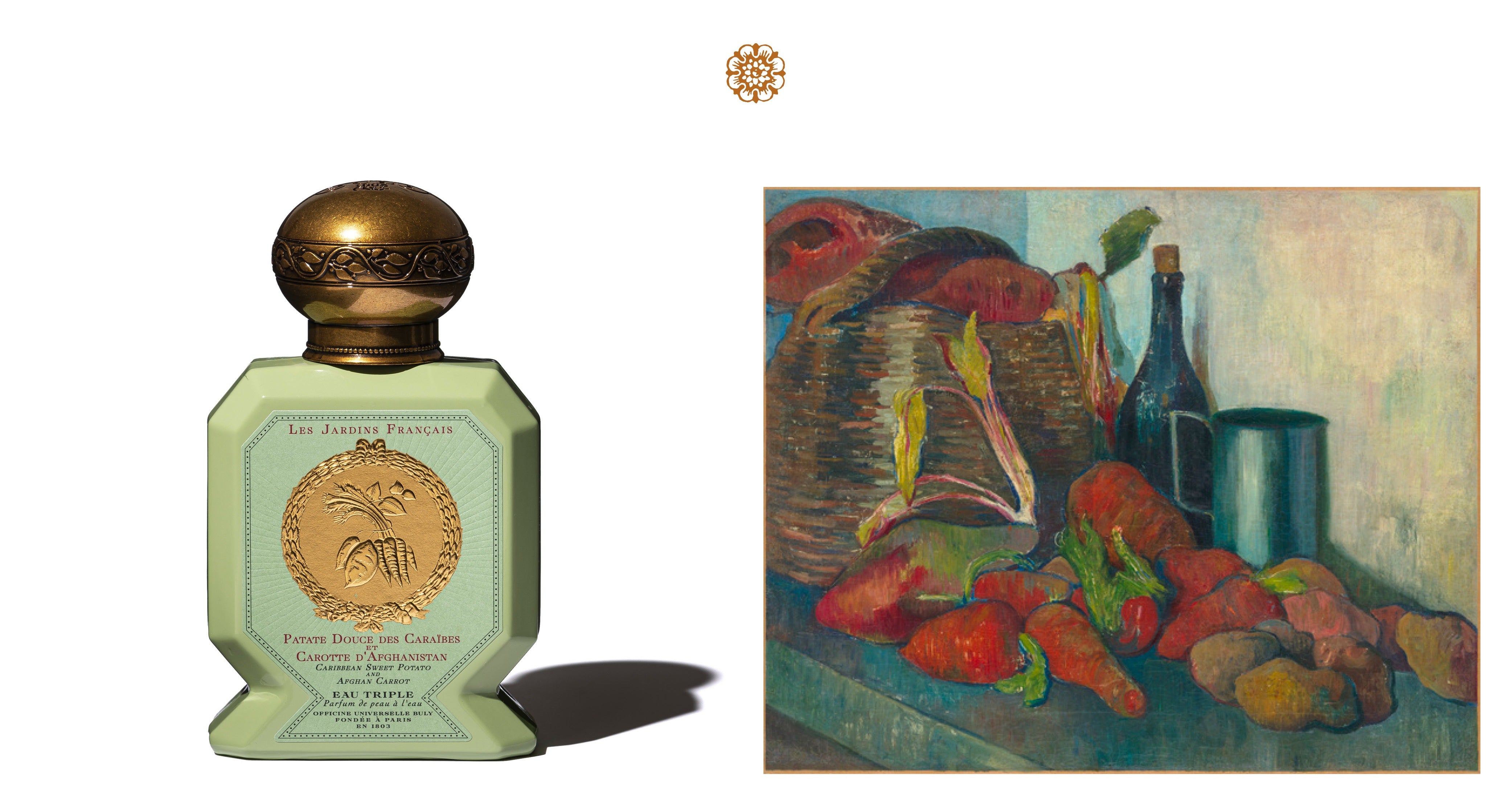 肌にのせた瞬間、かすかにスパイシーなアクセントとともにはつらつとした芳しい香りが立ち上る〈パタットドゥース・デ・カライブ・エ・キャロット・ダフガニスタン〉。