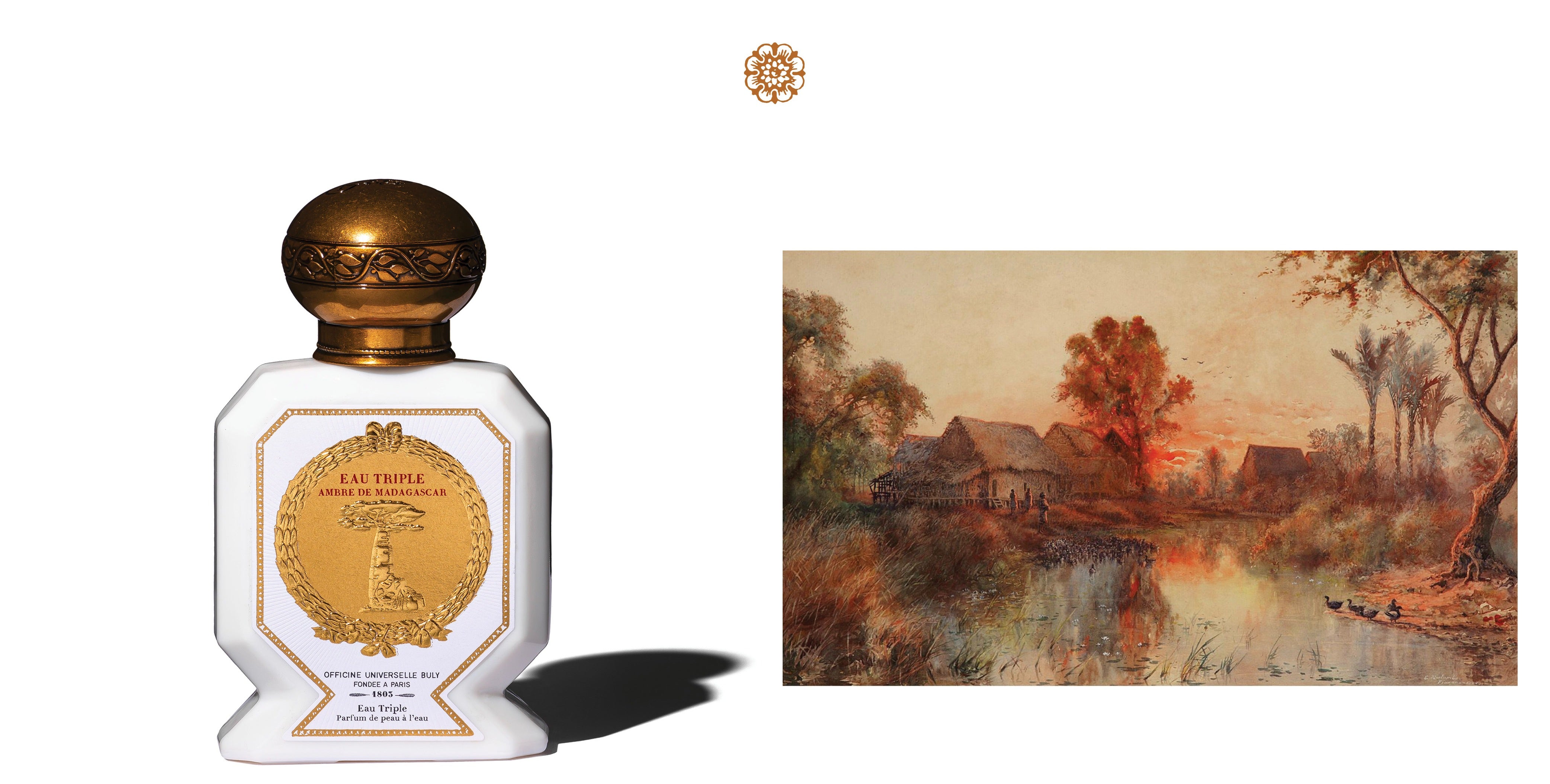 ジャスミンとマンダリンの幸せなマリアージュに、影のようにアンバーが寄り添いながら陶酔へと誘う〈アンブル・ドゥ・マダガスカル〉。マダガスカルの赤い空のように暖かな、神々しいまでに美しい秋の黄昏時のそぞろ歩きをイメージしたフレグランスです。