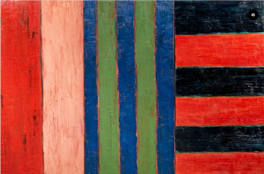 最後に、ミニマリストのフランク・ステラやソル・ルウィット、ショーン・スクリーたちは、幾何学の概念を超えて、まるで音楽のように色調のトーンを奏でました。