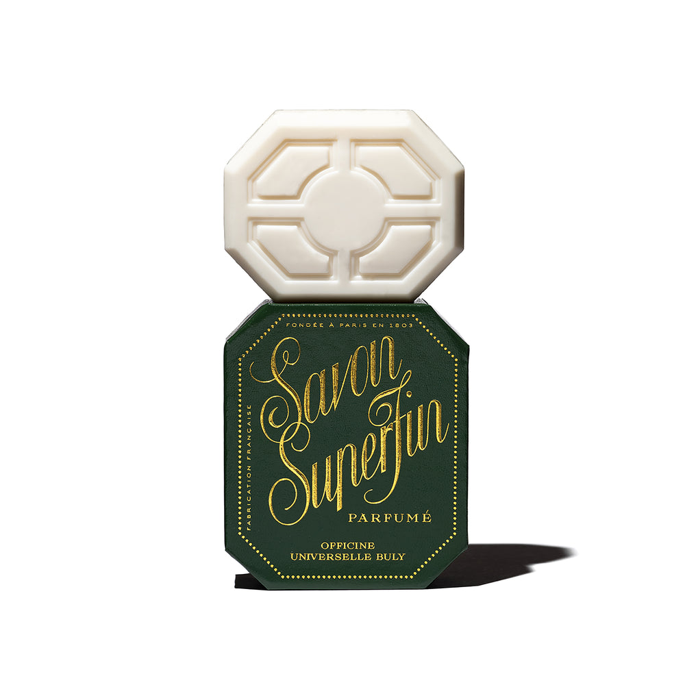 お肌を柔げてくれるpH中性せっけんの〈サヴォン・スゥペールファン〉は、ミルキーで細やかな泡立ちと香り高さが魅力です。香りを十分にお楽しみいただけるようデザインされた幾何学的なフォルムは、フランス庭園の洗練された雰囲気を感じさせます。